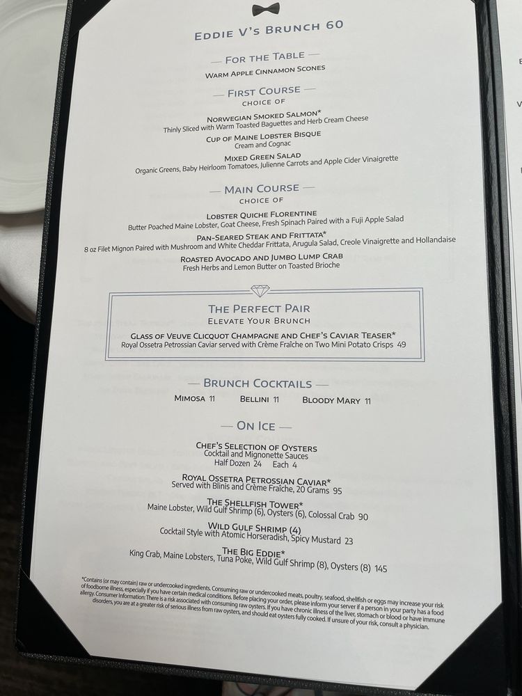- Accessibility: Eddie V’s offers wheelchair access and operates an ADA-compliant restroom.