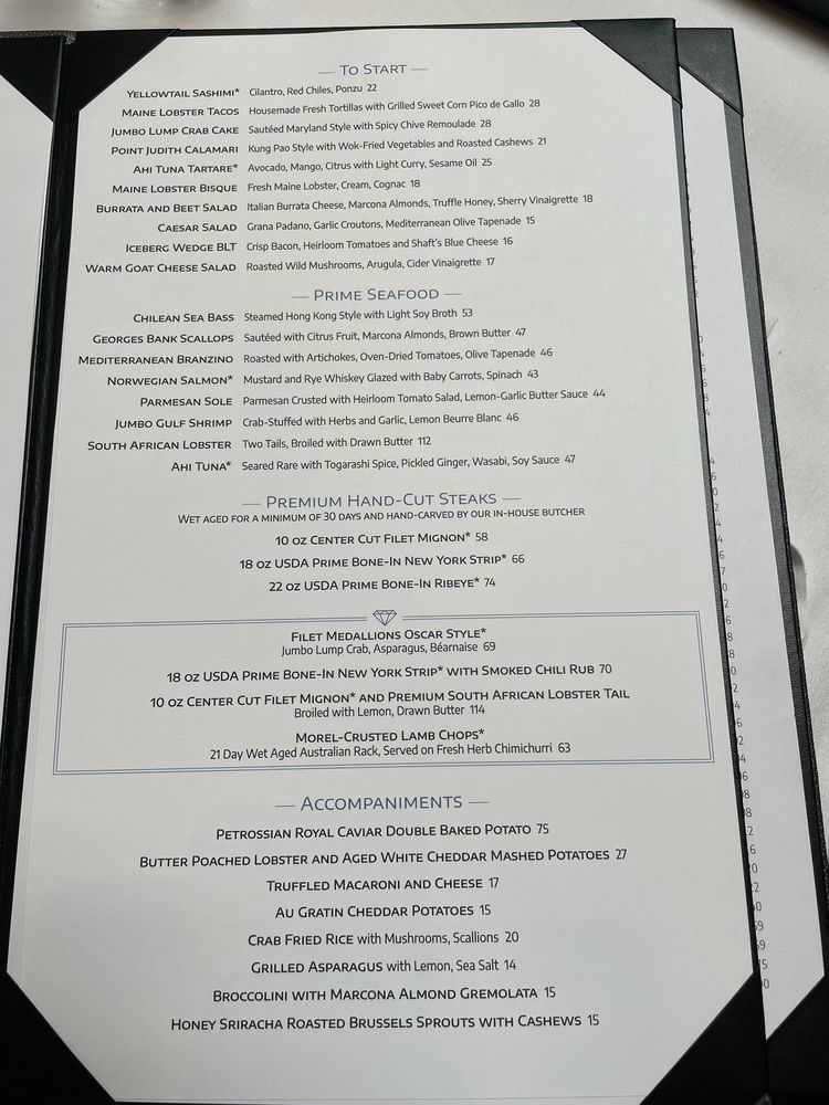 Eddie V's Prime Seafood - Dr Suite 158 Menu